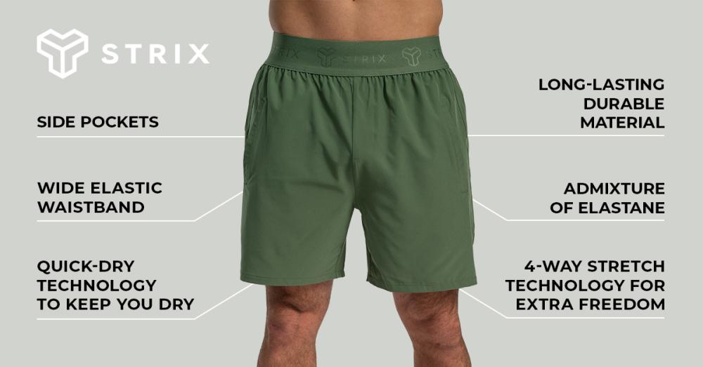 De plus, ces shorts ne se froissent pas et conservent leur forme même après longtemps. Ils sont dotés de la technologie Quick Dry, qui assure un séchage rapide et vous soutiennent pendant chaque entraînement. Vous pouvez les porter pour des séances d'entraînement de force, du cardio HIIT, ou d'autres activités sportives comme la course, le patinage, et bien d'autres. De plus, ce modèle de haute qualité de la gamme STRIX est équipé de deux poches pratiques pour divers petits objets. Elles sont idéales pour votre téléphone portable, votre portefeuille ou vos clés. Ainsi, vous obtenez une paire de shorts légers et parfaitement ajustée qui repousse les limites du mouvement vers un nouveau niveau. Rejoignez l'élite qui gravite autour de la marque STRIX et exprimez pleinement votre passion pour un style de vie actif !